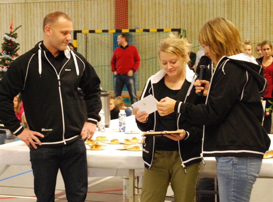 Då var ännu en julfest avklarad. Fint luciatåg. Många vann på sina lotter. Inmarsch med prisutdelning, ni som äldsta laget fick ett presentkort på Bareko. Som emma skrev blir man alldelles piggig när man får höra allt ni varit med om detta året 2010. Superettan vinner sin serie i 7-manna. Ni vinner den största serien man kan vinna i 11-manna, SKÅNESERIEN!!!! Starkt gjort för att tillhöra en liten förening på Österlen. Eskilscupen som är Sveriges andra största ungdomsturnering efter Gothia. Denna vann ni första gången vi var där, den gången spelade ni 7-manna. Detta året spelade ni 11-manna och var obesegrade fram till finalen. FINALEN spelades inne på Olympia, detta blev en fantastisk upplevelse för såväl spelare,ledare och föräldrar. Ni vinner finalen ganska så övertygande med 2-0 det var ett öronbedövande jubel från alla nära och kära som fanns på läktaren. Kerstin Perssons minnesfond tilldelades med motiveringen, Du spelare som nu ska mottaga detta pris, skall känna dig stolt. För du har verkat i Kickis anda. För oss är du en varmhjärtad tjej. Du är alltid positiv såväl på träningar, matcher, cuper, läger -ja i alla sammanhang. Ditt skratt din humor smittar av sig på alla och nu tror vi alla vet vem du är........med hälsningar från Gonzo i AIK. Emma Andersson ett stort grattis till priset på 1000:- Vi fick se två fina tomtar(Victoria och Linnea) som delade ut godis till alla. Tack alla för en trevlig julfest. Nästa fest blir vår egna julfest/spelarmöte den 17 december hemma hos Ferngård.