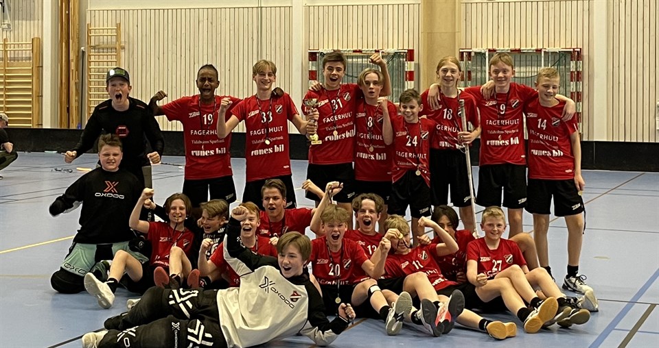 Helgen 1-3 april var vi Linköping och spelade Floorball Games. En av Sveriges största innebandycuper för ungdomar med över 400 deltagande lag. Vilken härlig helg det blev. Både ledare och spelare njöt av att bo på hotell med allt vad det innebär. Allting flöt på bra med boende, mat, resor mellan hallar, mm. Grabbarna sköttte sig föredömligt hela helgen och det syntes att de trivdes riktigt bra tillsammans. Hur gick då matcherna? Vi spelade i en riktigt tuff grupp där vi till slut efter stabilt spel kunde vinna gruppen. Både Täby FC, Tillberga Roosters och Linköping IBK stod för bra motstånd. Efter gruppspelet höjde vi oss ytterligare och söndagens slutspel blev en enkel resa fram till finalen där vi återigen mötte Linköping IBK. Efter en mållös första period kunde vi i den andra perioden gå ifrån både spel och målmässigt. Finalen slutar 3-0 till oss och vi är vinnare av FLOORBALL GAMES 2022!!! Följ fhib_p08 på instagram för bilder och höjdpunkter från cupen :-)