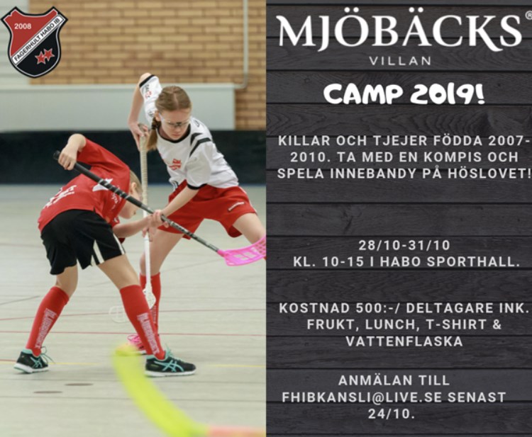 Tillsammans med vår huvudsponsor Mjöbäcksvillan anordnar vi ett träningsläger på höstlovet för killar och tjejer födda 2007-2010. Mjöbäcksvillan CAMP pågår under 28/10-31/10 klockan 10-15 i Habo Sporthall. Ledarna består av spelare från vårat herrlag samt ansvariga. Kostnad är 500:-/deltagare där det ingår frukt, lunch, t-shirt och vattenflaska. Anmälan sker till fhibkansli@live.se senast 19/10. Betalning till bankgiro: 225-3375 senast 24/10. Ange ev. allergier och tröjstorlek vid anmälan. Max 40 deltagare, först till kvarn gäller.