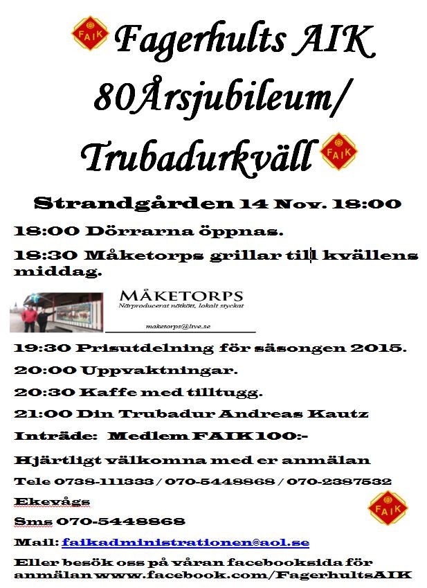 • 80 års jubileum 14 November!