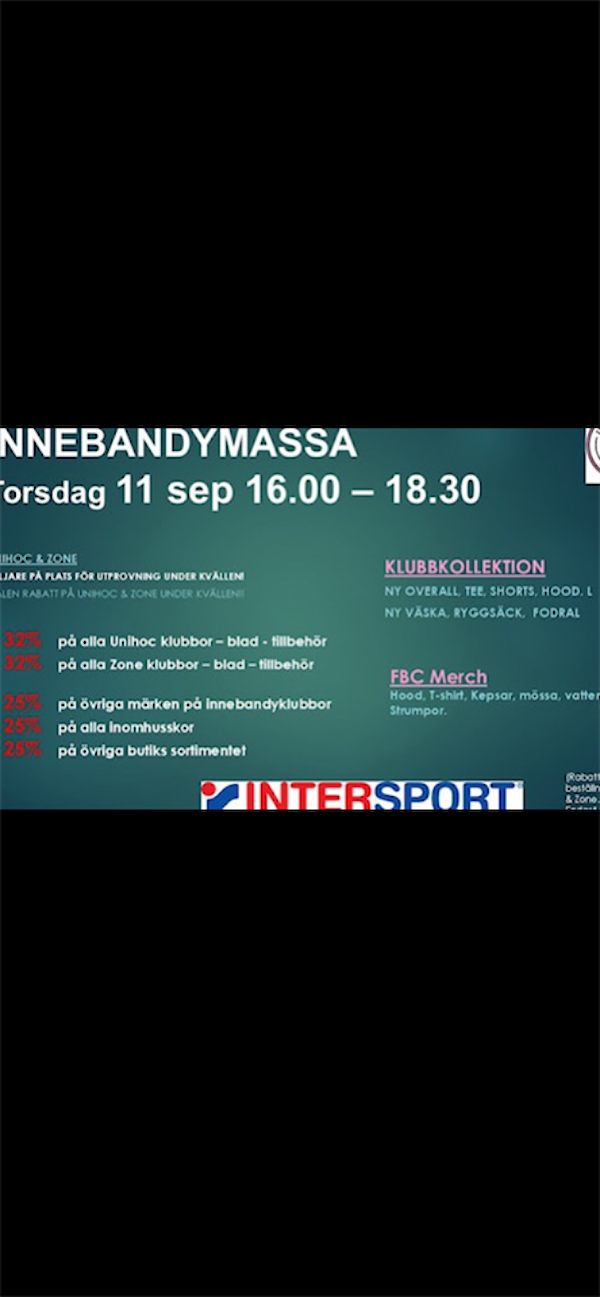 Glöm inte bort klubblag på Intersport torsdag 11/9 16-18:30 .