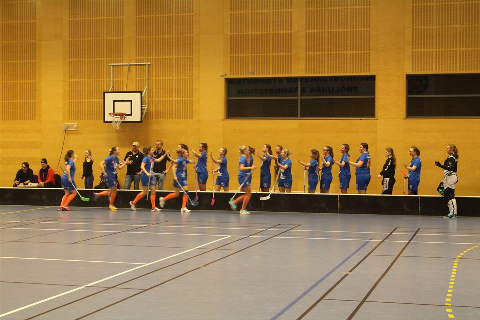 Efter två vinster och två förluster de inledande fyra omgångarna var det dags för årets näst sista match när Hindås IBK stod för motståndet i Hall of Flame, ett rutinerat lag som definitivt inte ska underskattas. Som brukligt var uppslutningen strålande och vi kommer till spel med två målvakter och 17 utespelare, otroligt roligt med tanke på att det ett tag var oklart om vi ens skulle få ihop ett lag. Truppen består nu av totalt 22 spelare varav drygt hälften kommer från vårt härliga F01/02-lag. Dessa tjejer har tagit enorma kliv under säsongen och förhoppningarna var således höga inför söndagens möte. Period 1 Den första perioden är en relativt avslagen historia där lagen känner på varandra. Vi ligger rätt i positionerna och bjuder inte Hindås på speciellt många lägen. Samtidigt vaskar vi inte fram så många målchanser och 0-0 är ett rättvist resultat efter 20 spelade minuter. Period 2 I paus snackar vi om att sätta högre press på Hindås då de är få spelare samtidigt som vi har en betydligt bättre fysik. Vi väljer att gå runt på samtliga 17 utespelare och den taktiska förändringen faller väl ut. Samtliga femmor skapar chanser men det är förstafemman med en för dagen glödhet Cassandra i spetsen som får utdelning. Vice-kaptenen står för 2+1 i perioden och vi går ifrån till 3-0. Roligt är också att Freja får göra sitt första mål i damlaget när ett långskott letar sig in bakom en skymd, men för dagen bra bortakeeper. Hindås kan sedan reducera på ett snöpligt sätt men vi går till pausvila med 3-1 i ryggen efter en betydligt mer fartfylld period. Period 3 Fint läge inför tredje perioden således där vi fortsätter på inslaget spår från den andra akten. Redan efter två spelade minuter får vi också det så viktiga 4-1 målet när en boll letar sig in på ett retligt sätt. Därefter blir vi helt logiskt något mer passiva och spelet jämnar ut sig. Hindås skapar under en period ett par fina lägen men Ida stoppar samtliga dessa via kvalificerade räddningar. Med knappt fyra minuter kvar att spela står ändå de rödvita gästerna från Härryda för ett mycket fint innebandymål och reducerar. Därefter reder vi dock ut stormen och tjejerna får fira sin tredje seger för säsongen! Sammanfattning Stark insats överlag där vi möter ett lurigt motstånd i form av ett rutinerat Hindås. Det är ständigt en positiv energi såväl på planen, bänken som läktaren vilket verkligen gör detta till en lagseger. Samtliga spelare står för gedigna insatser och tar till sig instruktionerna på ett strålande sätt. Roligt också att vi kan gå runt på alla 17 utespelare och trots detta få ett flyt i spelet. Ska några spelare nämnas är det givetvis Cassandra som är inblandad i samtliga mål framåt. Även Linnéa står för en grym insats på sin centerposition där hon styr sin femma. Samtidigt gör Ida ett par matchavgörande räddningar som gör segern möjlig. Roligt var också att se en heltänd Felicia som fick sätta dit både mamma och sina gamla lagkamrater. Redan på lördag väntar nästa match när vi ställs mot Myggenäs på bortaplan. 15.00 är det matchstart på Tjörn. Missa inte detta!