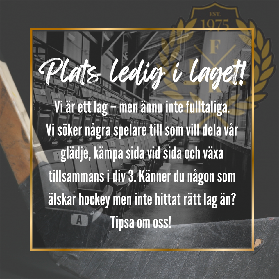 Vi söker några spelare till som vill dela vår glädje, kämpa sida vid sida och växa tillsammans i div 3. Känner du någon som älskar hockey men inte hittat rätt lag än? Tipsa om oss!