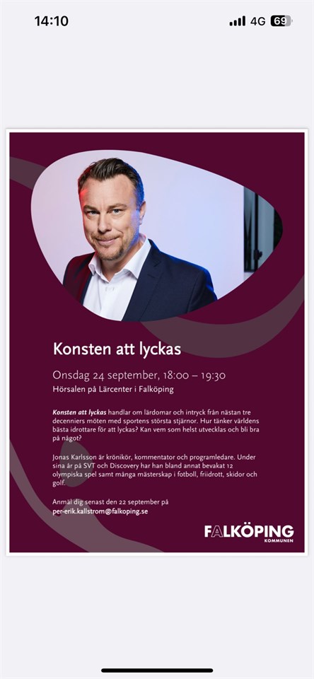 Vi tänkte gå på denna föreläsningen, om det finns platser kvar till oss alla. (Se bild ovan)