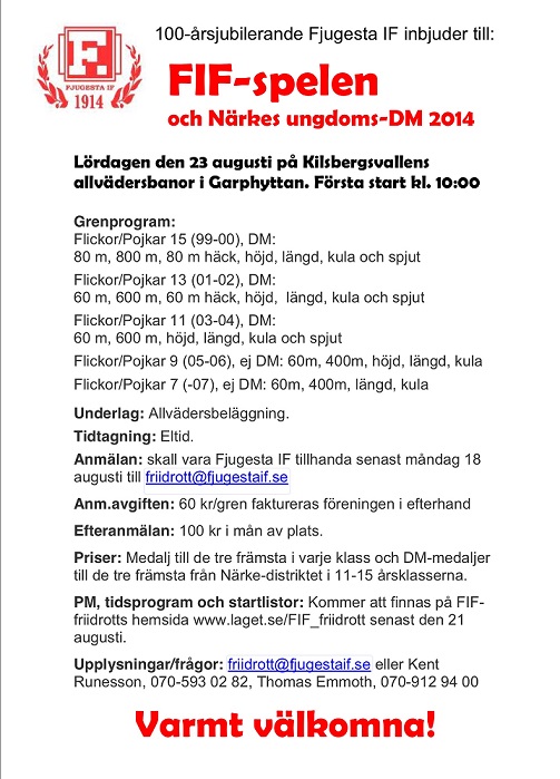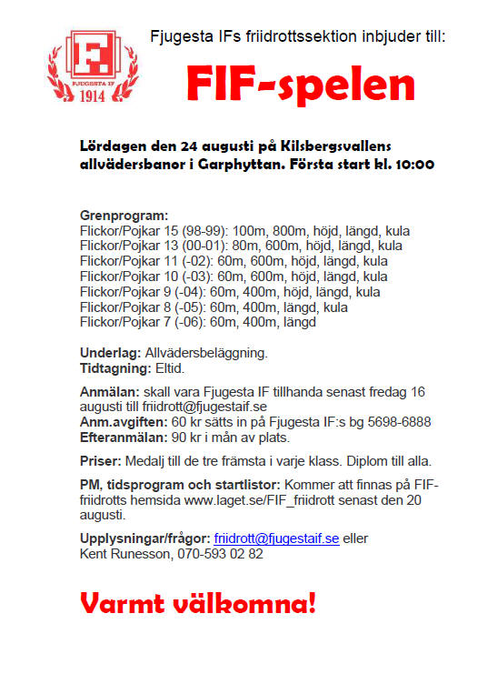 Fyll i din e-postadress för gratis uppdateringar om Fjugesta IF (Friidrott)