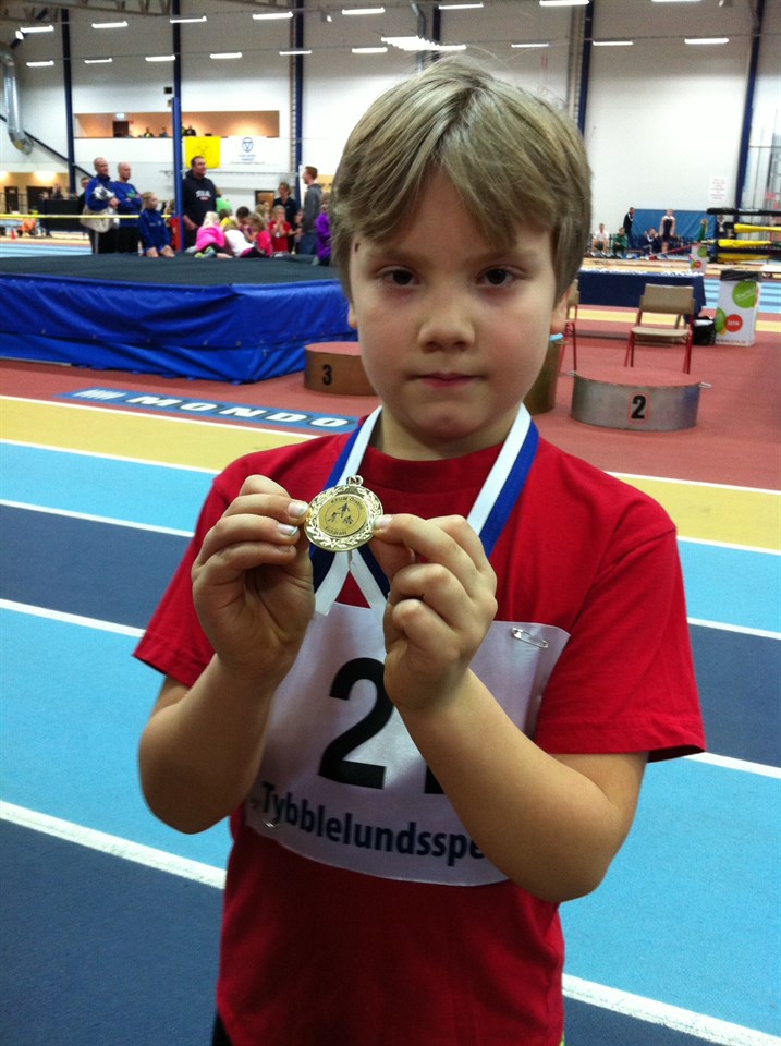 Det blev massor med fina resultat, flera personliga rekord, och en stor bunt medaljer idag på Tybblelundsspelen i Örebro för Fjugesta IFs många duktiga friidrottare! Här kommer hela listan: F8 Amanda Sjöberg 60m 11,08 s (pers), och längd 2,36 m Ida Hedman: längd 2,35 m, kula 3,19 m Julia Karlsson: 60m 11,26 s (pers), 200m 41,01 s Elvira Hellsten: längd 2,14 m, kula 2,89 m F9 Elise Emmoth: 60m 10,56 s, längd 3,31 m (pers och silver) Maja Söderquist: 60m 10,55 s (pers), längd 2,69 s (pers) F10 Agnes Lindby: 60m 10,32 s, längd 2,75 m (pers) F11 Isabelle Lindeborg: höjd 100 cm (pers), längd 2,35 m (pers) P7 Olle Elofsson: 60m 11,31 s (pers och guld), längd 2,29 m (pers) P8 Hannes Kindvall: 60m 11,69 s, 200m 42,54 s (pers), kula 4,86 m (pers och guld, på bild) P10 Daniel Kindvall: 60m 11,18 s, höjd 106 cm (brons), längd 3,12 m Johan Runesson: 60m 10,74, längd 3,04 m, kula 6,61 m (pers) Sebastian Gillström: kula 5,36 m (pers) Dennis Larsson: höjd 103 cm (pers), längd 3,49 m (pers) Martin Wrobel: 60m 10,82 s, längd 2,95 m P13 Oliver Unosson: 60m 9,02 s, höjdhopp 130 cm (pers och silver)