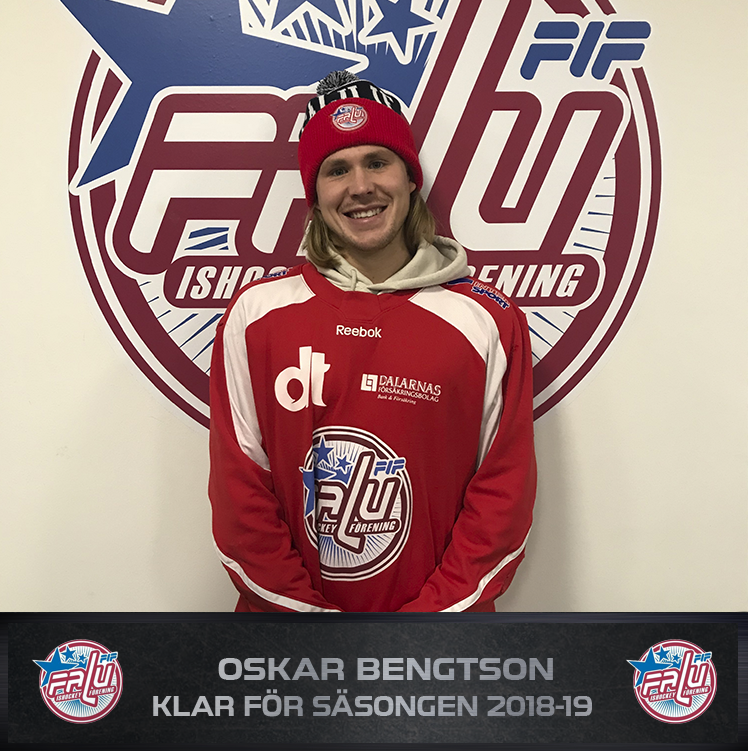 Från småland så hämtar vi en energirik spelare med ett grymt målsinne och ännu bättre hårsvall. Den 25-årige forwarden med 87 matcher i division 1 i bagaget kommer in och rör om i grytan. Oskar Bengtson heter vårt nyaste förvärv och spelade senast i Gislaved i den södra hockeytvåan. Herr Bengtson eller pappan som han redan kallas i laget gillar att förutom att spela hockey även att vara med på ungdomsträningar och hjälpa till på dessa. Oskar kommer att spela med nummer 11 på ryggen den här säsongen. Vi hälsar Oskar varmt välkommen till föreningen och Dalarna! A-lag Herrar 2 okt 2018 0kommentarer