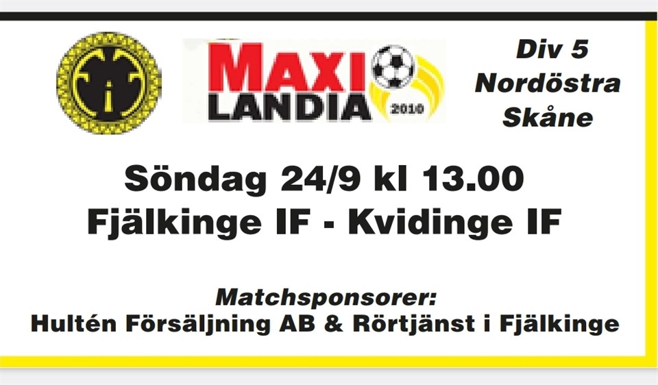 Fjälkinge besegrade Kvidinge på hemmaplan Fjälkinge vann mötet i division 5 Skåne nordöstra herr i fotboll på hemmaplan mot Kvidinge, med 3-1 (1-1). Fjälkinge IF - Kvidinge IF 3 - 1 (1 - 1, 2 - 0) Fjälkinge IF: Hayder Ali x 3 Kvidinge IF: Fredrik Holmqvist Fjälkinges tränare Niclas Nilsson kommenterade matchen: – En ändring i inställning och taktik gör att vi vinner rättvist. Vi ger inte Kvidinge chansen att få igång något spel. Vi är väldigt aggressiva och får chanser genom det. Utöver det är vi ganska bra på att skapa egna chanser också genom bra spel. Ett stort steg framåt! Hayder Ali gjorde Fjälkinges tre mål. Kvidinges gjordes av Fredrik Holmqvist. Med två omgångar kvar är Fjälkinge på nionde plats i tabellen, I nästa match möter Fjälkinge Trepca FC hemma på lördag 30 september 13.00.