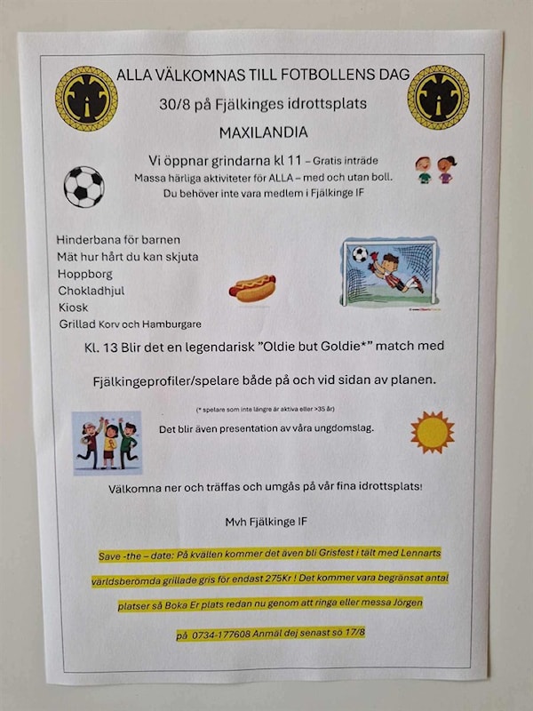 Dagen börjar kl.11:00 och förväntas hålla på till kl.13:00 då en match mellan "gamla" Fjälkinge profiler börjar.