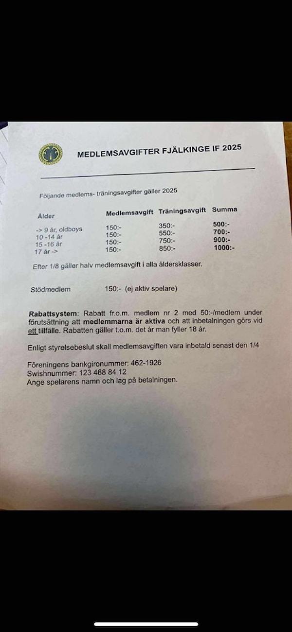 Hej nu har det blivit dags att betala in medlemsavgiften för era barn.