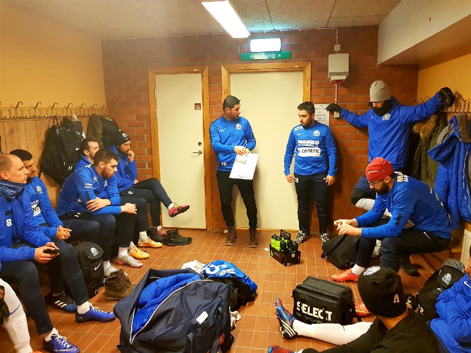 En plan som till 90% var spelklar fick duga till premiären. Många kände nog att den var stor men så blir det när man lämnar idrottshallen. Truppen Adi selmin, Abbe Ado Phille Semir Muzaffer Sinan Cafer Aldin Dzeno Avbytare Dino, Edis, Becir, Edin Matchen var ungefär som väntat. Enebybergs utvecklingslag kom mycket energi och löpvilja. Unga spelare som saknar rutin men kompenserar med hårt jobb och bra fart. För oss var allt lite nytt och det tog sin tid innan vi greppade tag om bollen. Vi har några fina chanser där mittfältet hittar Dzenan som tyvärr inte förvaltar lägena som uppstår. Istället straff till Enebyberg samt en drömträff från 25 m gör att vi vilar i halvtid med 2-0 underläge. Reducering kommer snabbt, vi bryter bollen och Dzenan lägger bollen framspelad av Semir. Vi etablerar lite av vårt spel. Man kan säga att vi blandar väldigt bra saker med mindre bas saker. Sinan ser oförskämd tränad ut, Dino ger oss viktig tyngd på topp när han kommer in, Dzenan ser ut att ha bra form, backarna springer väldigt mycket och ser ut att orka. Ado drar några 60 m löpningar. Många vänsterfotter på plan också 4 st(edis, Muzaffer, Cafer och Phille). Stämningen i övrigt väldigt bra. Och då kommer också utdelningen. 2-2 kommer efter att Semir hittar Dino på en frispark. Muzaffer kombinerar med Aldin vilket nästan leder till en ledning. Istället så är det Cafer som kör sin vanliga drive genom motståndarlaget, lägger den snett inått till Semir som enkelt kan lägga in segermålet. Mycket bra energi och stämning i truppen. Vi längtar nu till ferl matcher och träningar ute. Får vi ordning på vädret så kan detta bli riktigt stabilt!