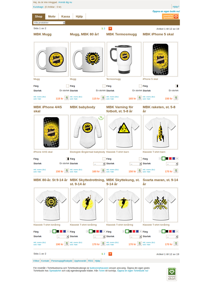 Kris och elände? Nä, inte hos oss på Mossens BK. Vi drar vårt strå till stacken för att få svenskarna att shoppa sig ur krisen - eller i alla fall våra medlemmar. Mossens årets julklapp Varför inte ett fräckt iPhoneskal till jul, julklapp eller att ha själv. Massor av t-shirts i olika färger och motiv. Och för fansen finns nu faktisk en t-shirt åt klacken "Svarta Maran". Bra att klä sig i när våra seniorer spelar match. Och varför inte vara riktigt "city" på morgonen, och smutta ur sin termosmugg med Mossens logga? Funkar bra i kollektivtrafiken efter nyår. -Det här är ju självklart årets julklapp för alla, säger vice ordföranden Anders Svensson. -Det bästa av allt, man stödjer ju Mossens BK när man handlar. En del av försäljningsbeloppet går till klubben, så att vi kan använda dem i vår verksamhet. Bara över nätet MBK samarbetar med företaget spreadshirt, om vår egen shop. MBK sitter inte på några lager, eller ligger ute med några som helst pengar för att kunna ha en egen shop. -När man beställer en mugg, iPhoneskal, eller t-shirt, trycks de upp, och skickas sedan hem till beställaren. Det går bara att handla varorna över nätet. Vi har inga av produkterna till försäljning i kansliet till exempel, säger Anders Svensson. Handla direkt här! Övriga mossenkläder, som överdragskläder, munkjackor, matchställ, strumpor och så vidare säljs som vanligt av vår sponsor, Team Sportia, och kan beställas hos kansliet bland annat.