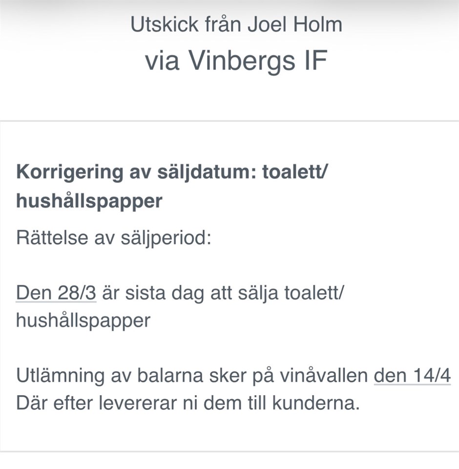 Klicka på bekräftelselänken i det mejl vi skickat dig för att börja ta emot uppdateringar från Vinbergs IF F-2018.