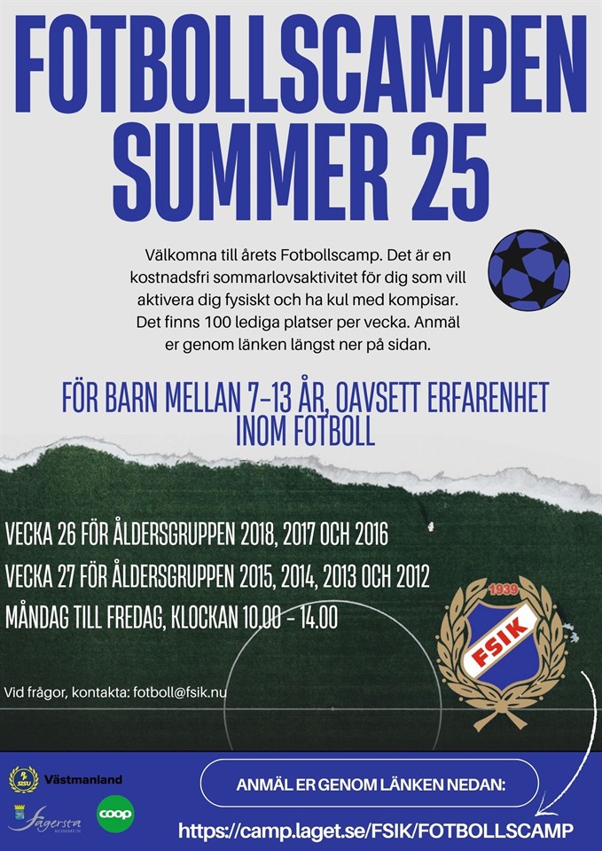 Anmälan sker genom länken: https://camp.laget.se/FSIK/FOTBOLLSCAMP