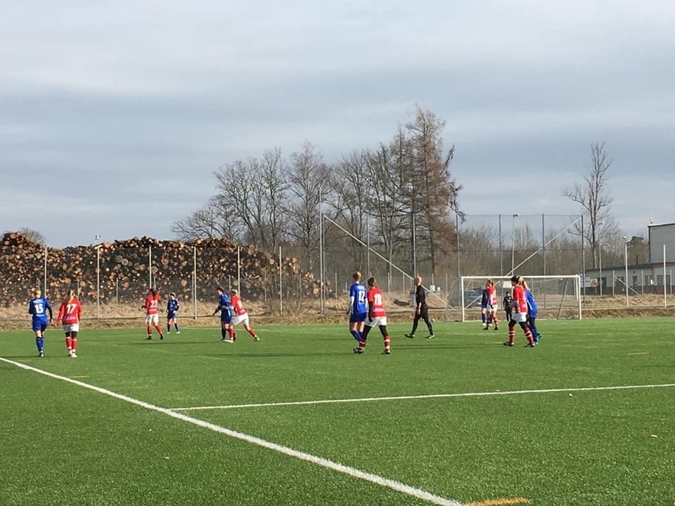 ... som vi väl dock mest ser som en träningsmatch, men ändå! 3 poäng är alltid 3 poäng och framförallt tycker jag att vi kan vara nöjda med stora delar av den spelmässiga prestation som leder fram till söndagens 2-1 seger i Upplandscupen, mot vassa seriekollegan Östhammars SK. Det var med viss spänning och nervositet vi gick in i denna match. En av seriefavoriterna på andra sidan medan vi själva fortsätter bygga på det "Film Dam 2020" som hittills bara har en match i benen. Vi testade en ny organisation på planen (som vi i damlaget inte spelat med sedan en träningsmatch 2018) och på det flera spelare i helt nya eller nygamla positioner - skulle vi få ihop det mot ett så pass bra lag? Sett till motstånd och de yttre förutsättningarna med en stark gråkall vind som ständigt försvårade spelet för de två lagen så ska vi efteråt givetvis vara klart nöjda -framförallt den kollektiva prestationen. Det sprudlar väl inte av målchanser i matchen, men under större delen av den första halvleken känns det som att vi har hyfsad kontroll på händelserna. ÖSK har en riktigt bra målchans när de rinner igenom på sin högerkant där Sara avvärjer med en bra utrusning, men utöver denna och lite flipper vid någon fast situation så känns det stabilt i vårt försvarsspel. Vi skapar ett antal öppna lägen, både genom vassa omställningar och spel hela vägen nerifrån, men tyvärr är avsluten inte riktigt där än - men vi spelar oss dit och skapar chanser vilket är positivt. Vi får dock gå till vila med halvlekens enda mål i vår favör. Under en period där vi tar över lite så är det en fast situation som resulterar när Ida får bra fart på boll och vi får se en ÖSK-spelare forcera in bollen i eget mål - därmed gick "Självmål" upp i skytteligaledning för vår del hittills denna försäsong! I andra halvlek kommer ÖSK åter ut med ny energi, och det känns lite som att det lag som lyckas spela sig ner på motståndarens planhalva blir kvar där lite längre än normalt tack vare vinden - det blir lite extra jobbigt med både löpningar och tillslag när byarna tar i. Andra halvlek är tämligen chansfattig även den, förutom lite flipper och avslut som täcks av två förtjänstfullt arbetande försvar så är det väldigt direkt klara målchanser förutom de två som resulterar i mål. Vi gör det första - och utökar till 2-0 efter ännu en fast situation. Joss får ett utmärkt läge att knoppa in bollen, blir dock störd i duellen och istället för att få bollen mot mål så blir det en perfekt nickpass till Linkan som tajmar sin nick perfekt och galant ger oss 2-0. Det känns som att vi har läget under kontroll, men det smyger sig in lite tveksamma beslut med att både hålla boll för länge och slå för mycket långt vilket ger ÖSK chansen att komma tillbaka i slutet. Efter en effektiv spelvändning så skottas det riktigt vasst av yttern som tar sig in i straffområdet - otagbart för Sara, men lite passivt av oss i tidigt skede i anfallet. Coacherna hann få lite vibbar från 2018 där ÖSK började lyfta in långa i straffområdet och kvitterade i slutsekunderna - men efter några längre på yta där vi fick andas och ett hårt jobb till slutsignal så höll vi undan denna gång. Det känns som att vi vinner rättvist efter en bra prestation (efter de förväntningar man kan ha detta tidiga skede av säsongen - och utifrån våra förutsättningar), men ÖSK är stabila och kommer bli att räkna med under säsongen. Det ska också sägas att vi är väl närmare ett "ordinarie" lag idag än vad ÖSK var som saknade ett antal möjliga startspelare - dock inget som fråntar oss insatsen och tre inledande poäng i Upplandscupens gruppspel 2020. Individuellt sett kul att se Sara tillbaka i kassen igen efter en säsongs frånvaro, ryar och står i och jobbar för att anpassa sig till en lite annorlunda spel jämfört med 2018. Framför henne gör backlinjen en bra kollektiv insats och hittar samspelet än mer defensivt och vågar delta offensivt - med god täckning av framförallt systrarna Eriksson centralt som tar kampen på allra bästa sätt i denna viktiga lagdel. Offensivt finns det riktiga godbitar att bygga vidare på, med spel hela vägen nerifrån, men känns precis som efter Hillematchen att det finns noggrannhet att slipa på i förstatouchen, spelbarhet och kvalitet i passningsspel och värderingar gällande när boll ska släppas och inte. Att vara mer "kamikazes" och i hög fart ta oss ner bakom backlinjen i riktning mot mål och bli rappare gällande att trycka in bollen i goalzone och där hugga är något vi också behöver slippa på - finns lite "inomhuslir" kvar att jobba bort i den delen - samtidigt som det är kul att se att vi stora delar ändå vågar och försöker hålla i boll - vilket är en vinst av inomhusperioden vi har bakom oss. Som sagt. Mycket gott att jobba vidare på under vägen fram till vår seriepremiär! Tack till Östhammar för en trevlig och bra genomkörare! I nästa match väntar Häverödals SK - en som alltid tuff motståndare och nykomlingar i div 4 vi minns från tiden i div 5 - så vi går för bästa möjliga träningsvecka och förbereder oss för att göra ännu en bra prestation tillsammans!