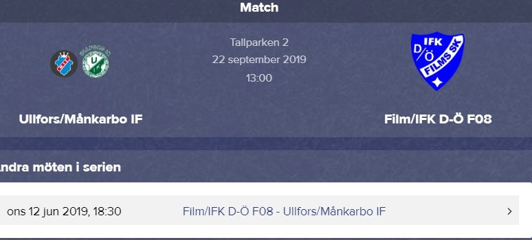 På sön har vi våran sista bortamatch i F08 serien. Månkarbo/Ullfors står för motståndet. Match kl. 13.00 och spelas på Tallparken i Månkarbo. Samling kl. 11.15 på IP. Kallade: Lova-Esther-Sandra-Eleanore-Edith-Ebba-Nova-Linn E-2 st från F09. Tvätt: Först till kvarn... /Ledarna