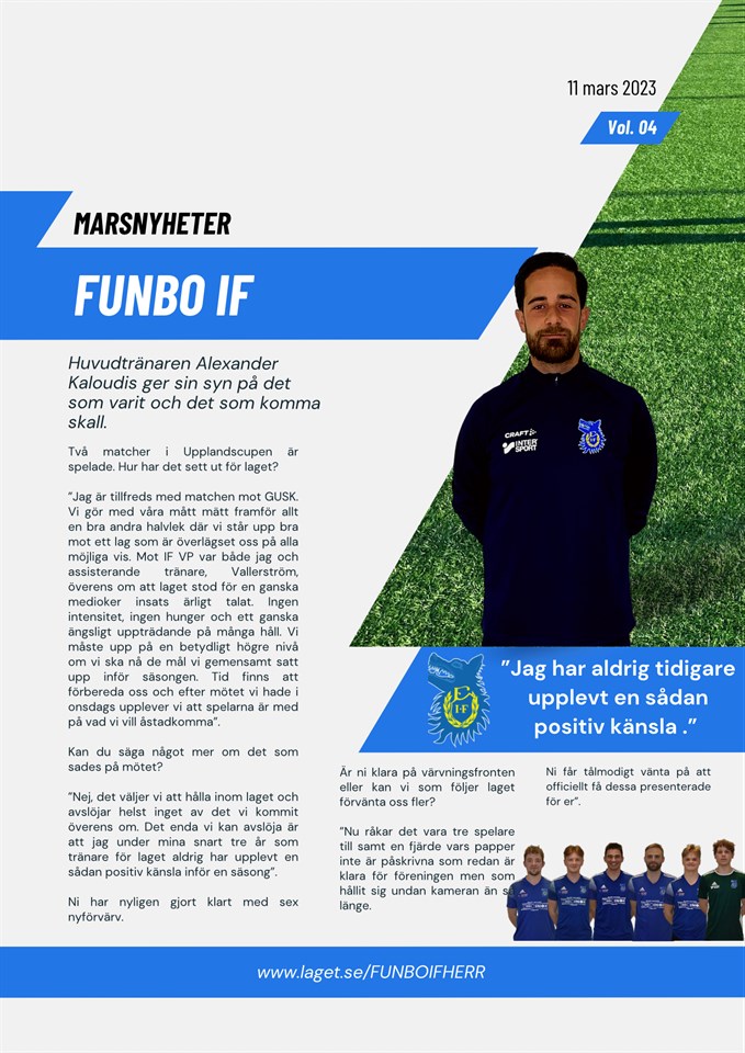 Vi har presenterat 6 av de hittills 10 klara övergångarna. Från vänster: Leo Razdan är klar! Leo var på lån hos oss under fjolårssäsongen men har nu skrivit på för en permanent övergång vilket vi är otroligt glada över. Leo kommer att vara fortsatt nyttig med sina ledaregenskaper och med sin enorma försvarskvalitet. Får vi även se några drömmål från Razdans högerfot denna säsong? Det finns anledning att hoppas på det! Ville Holmqvist är klar! Precis som Leo Razdan så har nu Ville, som också var utlånad från Hudiksvallslaget Strands IF förra säsongen, skrivit på permanent för oss. Fjolårets stördes av skador och sjukdomar men i år hoppas vi att konkurrensen mellan våra två målvakter ska utmynna i något stort för de båda. Ville är en fantastisk skottstoppare och besitter även han ledaregenskaper som är viktigt för vårt unga lag. Jacob Axelson är klar! Efter endast en träning så var vi tränare övertygade, Jacob ska in i laget och detta var något som även Jacob kände. Funbos snabbaste övergång? Vi tror så! Jacob, som närmast kommer från Sunnersta AIF, besitter ett otroligt lugn med bollen, är positionssäker och har även visat sig vara ett hot framåt. Han har potential att vara en av sexans absolut bästa ytterbackar. Alexander Åhl är klar! Efter förra säsongen valde Emil Dahlström att lägga skorna på hyllan och vi har tack och lov lyckats ersätta honom med en nästan identisk fotbollsspelare. Åhl, som precis lämnat SK Iron, är en rivig anfallare som sliter i både djupled och i dueller. En jobbig anfallare att möta som med sin rutin kommer att bli lagets pappa, en spelare som kan lugna ner ett ungt lag när det eventuellt blåser. Ett nyttigt nyförvärv som kommer bidra med rutin, slit och förhoppningsvis minst ett tiotal måhl. Liam Ramshaw är klar! Efter ett lyckat provspel i OilQuick cup söder om Hudiksvall tidigare i vinter kom föreningen och Liam överens om att det bästa vore att fortsätta samarbetet. Liam kommer närmast från seriekonkurrenten Harg-Östhammar FF och kommer med sin enorma arbetskapacitet, sitt driv och sin oerhört energiska spelstil vara till oerhört stor nytta på framför allt vårt centrala mittfält kommande säsong! Adam Engkvist är klar! Vi fortsätter att plocka russinen från kakan när vi valt att göra klart med Adam Engkvist från Almo BK, som också är en seriekonkurrent. Adam kommer likt Liam även han bli en nyttig spelare framför allt på det centrala mittfältet. Med sin lugna, bolltrygga spelstil, sin fysik och med en lojal arbetsinsats kommer man från Adam alltid få ut precis det man behöver i matcher där vi vill föra spelet!