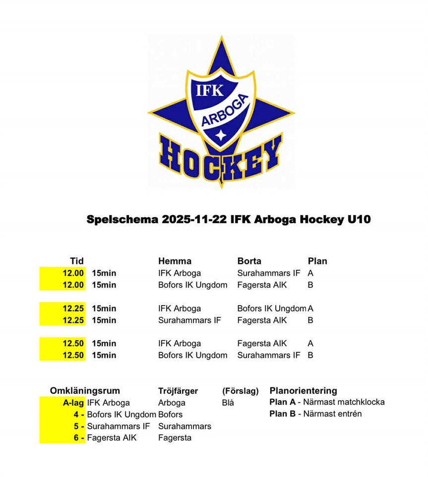 Bifogar spelschemat för lördagens matcher i Arboga Obs! Uppdaterade tider. Samling kl 11.20. Matchstart kl 12.00 U11/U10 (2015/2016) 19 nov 0kommentarer