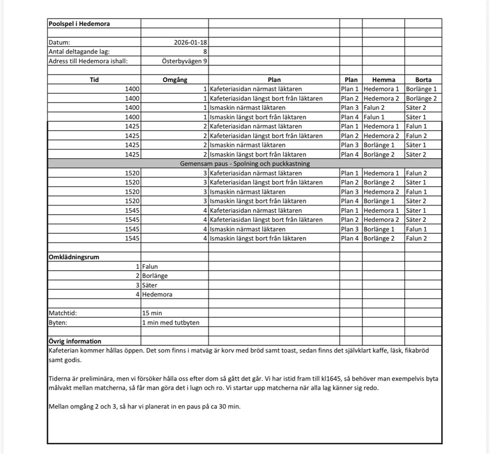 | 9. | (21) | Ludvika Hockey Förening Team -11 |