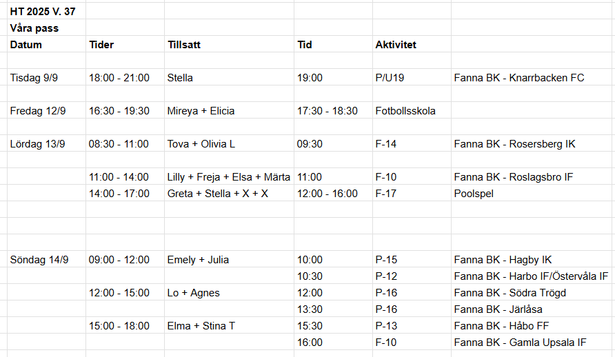 Fanna Vit - Parkcupen | 5 okt, 11:30 |