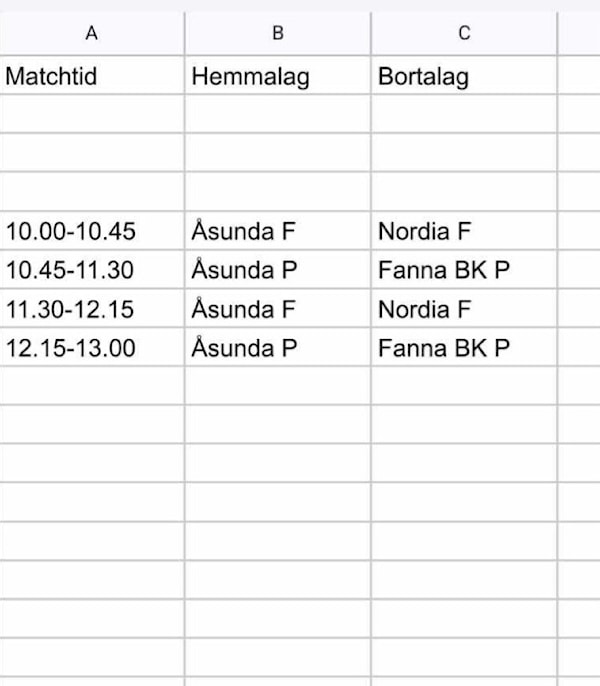 Den 27 april har vi blivit inbjudna att spela 2 matcher mot Åsunda. Hoppas schemat syns bra i filen som kommer här.