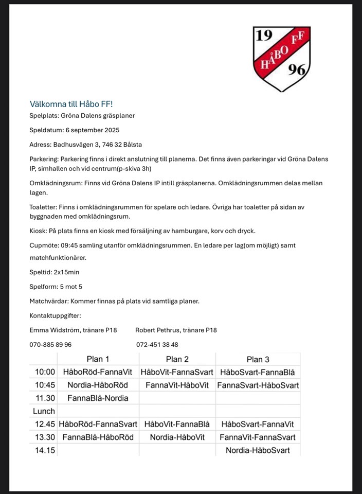 • Matchtröja (vi har ett begränsat antal – ta gärna med egen om man har möjlighet)