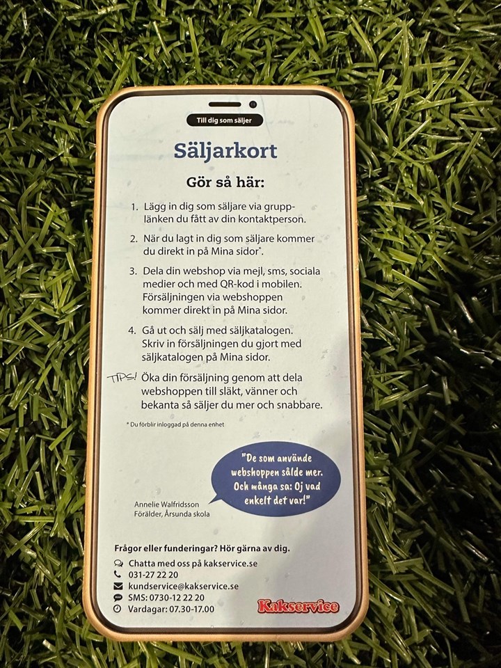 Hej! Glöm inte att gå in och registrera er försäljning. Slutdatum är nu på fredag den 15 mars. Nedan hittar ni länken till mina sidor och webshoppen. https://www.kakservice.se/minasidor/BOJOGE Vid eventuella frågor tveka inte att kontakta Sara (Linus mamma) på 070-6328527 P-11 13 mar 2024 0kommentarer
