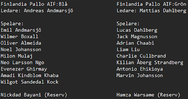 Här kommer laguppställningar för söndagens sammandrag på Backavallen. Notera att vi har två på reserv till detta sammandrag.