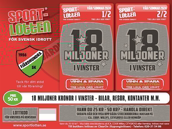 Lottpriset är 50 kr och föreningen får 25 kr per såld lott. Senast den 3 juni redovisar ni pengarna till lagets lotteriansvarige.