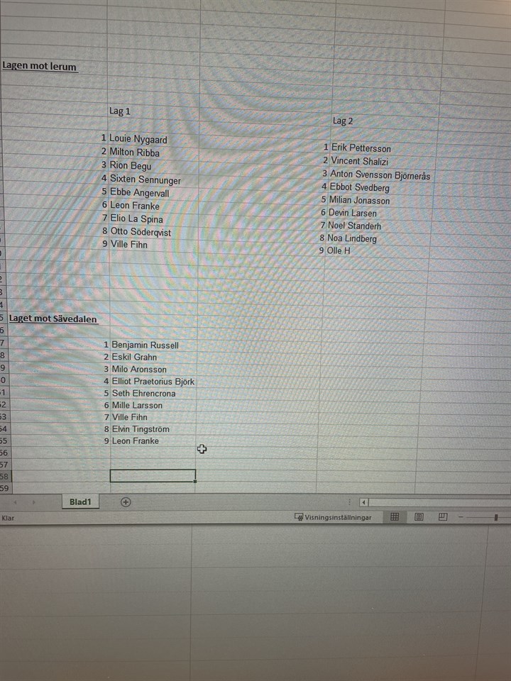 Hej Se bifogad bild för lagindelningen till Lerums och Sävedalen matcherna. Lerums matcherna spelas på flodala 25/9 Matchstart 12;15 Samling 11:45 Sävedalen matchen spelas 27/9 Matchstart 19:00 Samling 18:30 Forza blåvitt
