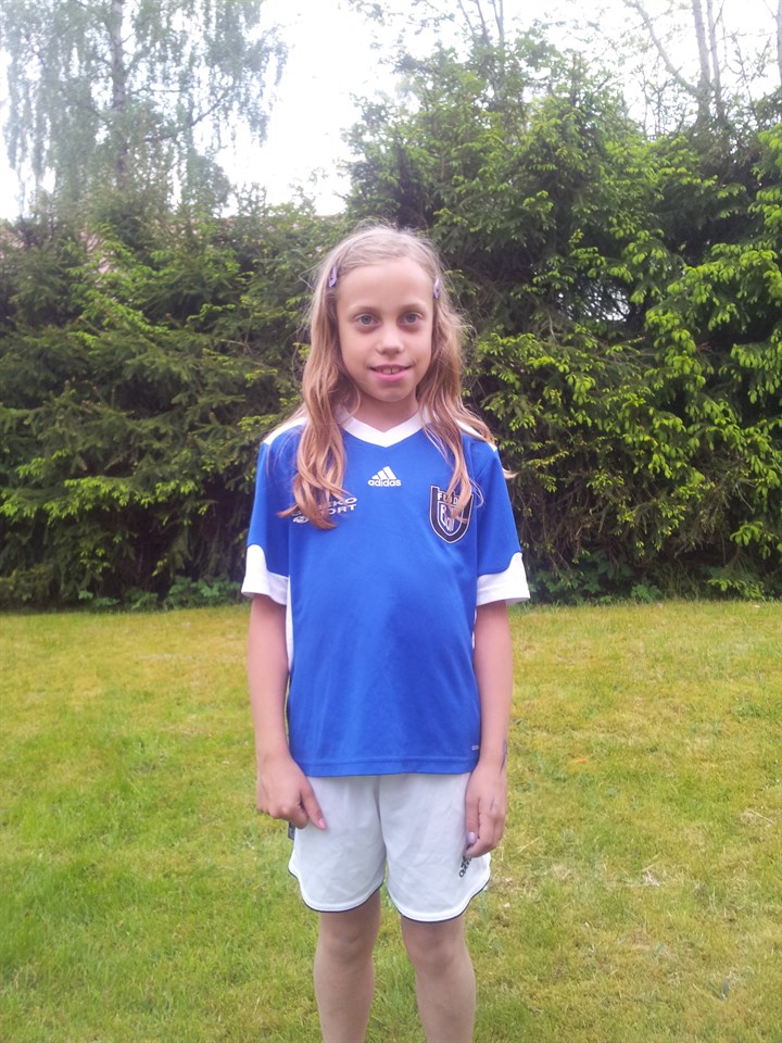 Hej alla! Alliansen i Tollered! Vi samlas på Montessoriskolans parkering kl.12:40 nu på söndag 25/5, första matchen börjar kl.13:30. Jag har lagt in spelschemat under dokument och foldern heter Alliansen. Klicka på den så kommer en PDFfil som heter Tollered och det är spelschemat. Nya matchkläder! Vi har fått ett komplett matchställ med tillhörande shorts, och vi kommer på torsdagen efter träningen att dela ut en tröja och ett par shorts till varje spelare. 2st målvaktströjor ingår också. Spelaren ansvarar för sitt matchset och har på sig det till varje match/cup tillfälle som hon skall deltaga på för Floda Boif. Vi använder inte matchkläderna på träningar eller på andra aktiviteter som inte har med Floda Boif:s aktiviteter att göra. Jag kommer skriva vilken spelare som har vilket nummer för att sen lättare kunna inventera vilka som inte har lämnat tillbaks när vi skall byta till större kläder. Det kanske låter lite hårt och mycket regler kring kläderna men vi har jobbat en hel del för att få ihop ett komplett ställ till laget och när vi en dag skall byta upp oss i storlekar så vill vi lämna ett komplett ställ till nästa lag som ärver det. Och förhoppningsvis kommer ett komplett ställ till oss. Tyvärr har vi bara 11par strumpor men är det någon som inte har blåa strumpor får den spelaren ett par. Dom som har matchtröjor kvar från det gamla stället tar med sig det imorgon (torsdag) på träningen. Wilma får stå modell för det nya matchstället som är med på bild. På söndag smäller det igen och Floda Boifs F06:or har för första gången likadana kläder!//Ledarna
