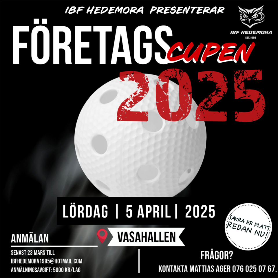 Fyll i din e-postadress för gratis uppdateringar om IBF Hedemora Företagscupen
