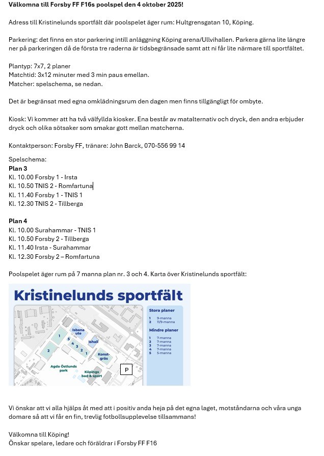 Klicka på bekräftelselänken i det mejl vi skickat dig för att börja ta emot uppdateringar från Forsby FF F-16.
