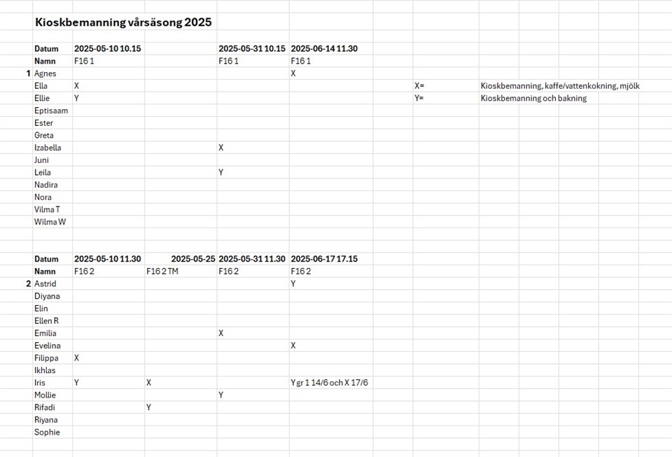 Varför undrar du? Jo, för att vi i F16 anordnar poolspelsfest för lag från när och fjärran! Lite så, lagom pirrigt, känns det när vi klurar på upplägg. Vi har totalt 7 gästande lag och därmed alltså 9 st lag anmälda till vårt poolspel och anmälan är inte stängd än. Riktig fotbollsfest, attans så kul! Det gör att vi, förutom spelschema och annat som ska klaffa den dagen, ska satsa på en välfylld kiosk med ett brett utbud i både mat- och fikaväg! Vi planerar för grill (hamburgare och korv) och en kiosk med sötsaker och dryck. Meeeeen! Vi klarar inte detta utan er! Så alla ni, som ändå stöttar våra barn i ur och skur – vilka räcker upp handen för ett kiosk/grillpass denna dag? 😊 Vi söker: • 3 st bakspecialister • Totalt 6 st stjärnor som bemannar kiosken (fördelat på 2 pass) • Totalt 4 st grillmästare (fördelat på 2 pass) I första hand hoppas vi såklart på din frivilliga anmälan, i andra hand gör vi i ordning bemanningslistor för dagen. Så... vad kan du hjälpa F16 med denna dag? Hör av dig till undertecknad med vad du kan bidra med med under poolspelet och tack på förhand för din insats! Hörrni, sa vi att poolspelet blir av?! 😊 ⚽ /Ledarna F16 genom Suzana
