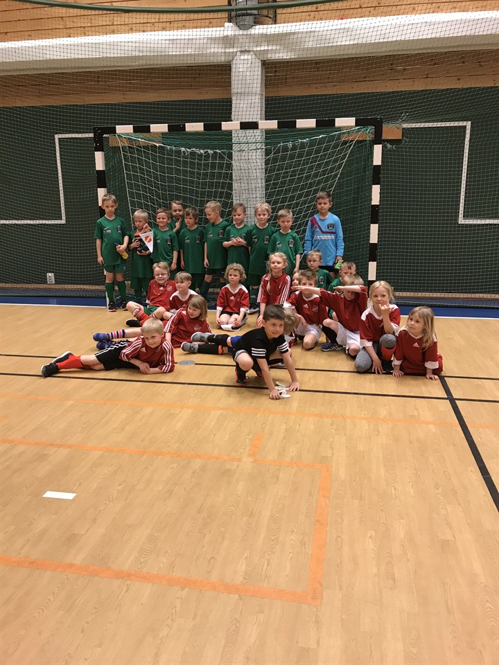 Idag har vi spelat liten inomhuscup mot Kyrkhults BK Union med barn i samma åldrar. 25 glada och nyfikna barn uppdelade i 4 lag möttes i 10 minuters matcher med röda och gröna dressar på. Isak Johansson ställde snällt upp som domare. Det var jämna matcher med full fokus på att ha kul tillsammans men ett och ett annat mål på varje håll blev det. Kul att så många föräldrar var med och hejade på läktaren. Efter sista matchen bjöds det på kaffe, saft och grillad korv där Jan-Olof och Birgitta stod för allt fix med det. Stort tack för hjälpen!! Vi kommer ha vidare samarbete med Kyrkhult då vi kanske kommer spela på konstgräs hos dem till sensommaren. Bra jobbat idag allihopa ! Nu blir det 2 veckors uppehåll innan vi ses på gräset den 2/5! /Ledarna Fotbollsskolan 15 apr 2018 1kommentar
