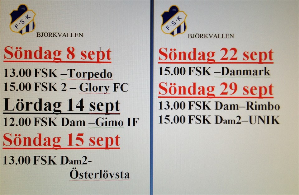 OBS! Matchen Söndag 22sep FSK-Danmark spelas 13.00 (tryckfelsnisse på affischen, ej 15.00) Frösunda Sportklubb 6 sep 2013 0kommentarer