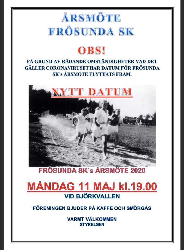Årsmötet flyttas fram, se nytt datum. Frösunda Sportklubb 18 mar 2020 0kommentarer