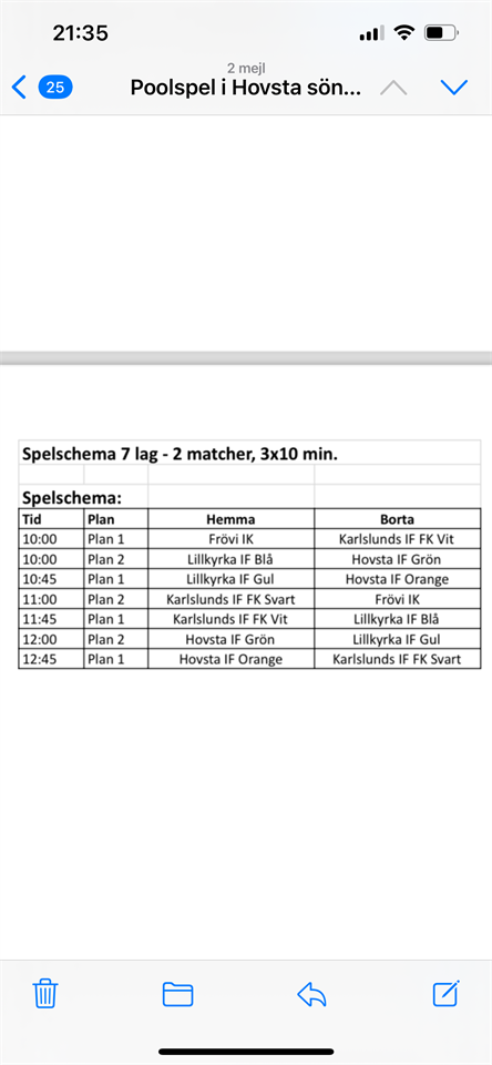 Hej! Nu har Frida bönat och bett om att vi ska få ha med 2 lag, och Hovsta har varit så schyssta och fixat det ❤️ Samling 09:15 som skrivet förut, men nu delar vi på gänget i 2 lag - lagindelning får ni på söndag. Framåt Frövi! /Ledarna