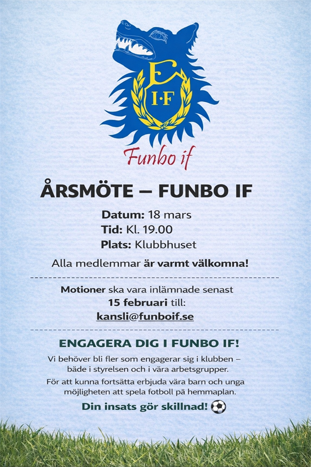 Klicka på bekräftelselänken i det mejl vi skickat dig för att börja ta emot uppdateringar från Funbo IF.
