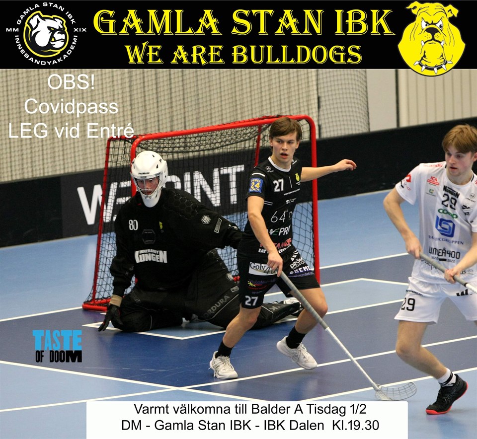 Ikväll spelas dm-semifinalen mot SSL laget IBK Dalen. Fd Gamla stan spelarna, Anton Åkerlund, Alexander Hedlund, Pär Forsman, Albin Carlsten, Emil Viklund. Kommer på besök. Vi ser fram emot en tuff drabbning, välkomna till balderhallen. Kl 19.30 covid-pass och legitimation gäller !
