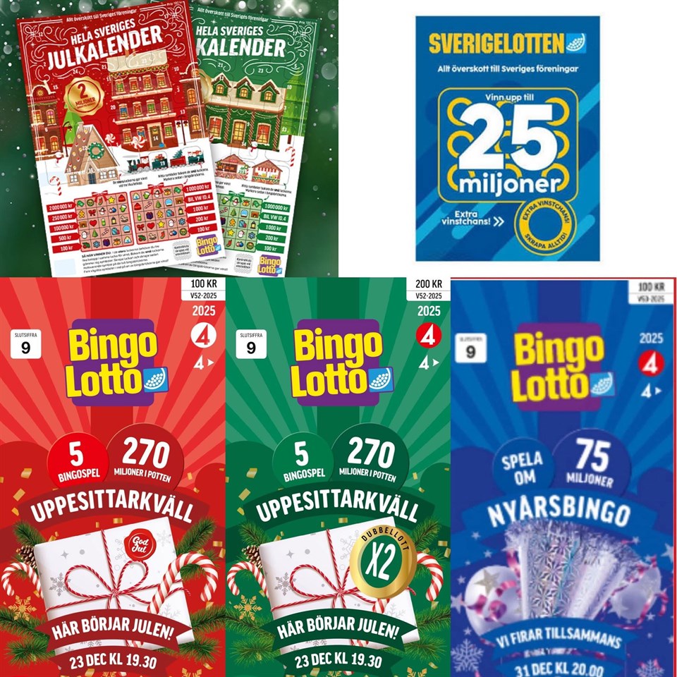 Bingolotter samt Sverigelotter säljs till första veckan i december, alltså är sista dagen att lämna in beställning den 7 December så vi får allt innan jul!