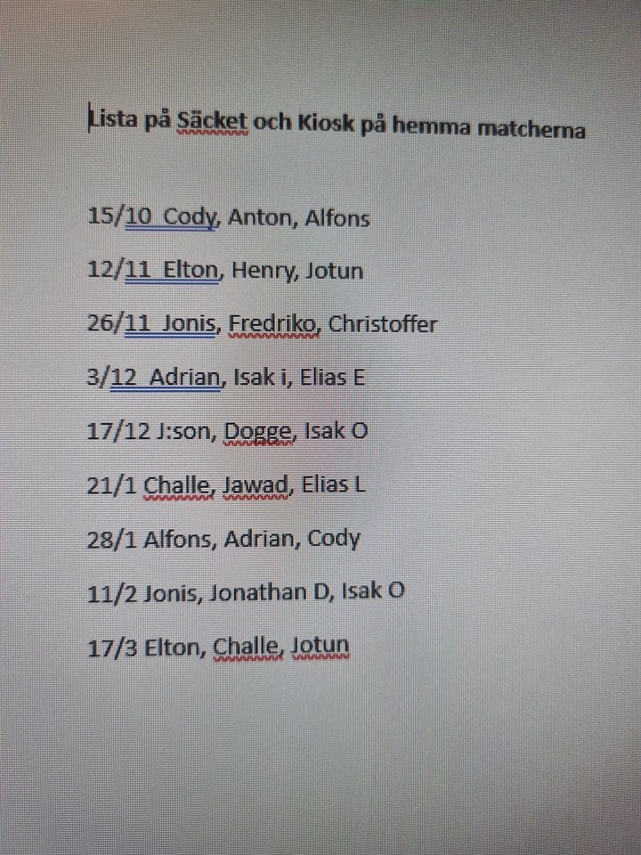 Eftersom vi är många i laget så kommer vi ställa över några spelare varje match.