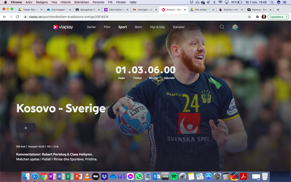 I morgon söndag sänder TV 6 handboll. Det är Sveriges herrar som spelar EM-kval. Matchen börjar 17:00. En perfekt present på fars dag att låta far och son se lite handboll :) P-2012-2013 7 nov 2020 0kommentarer