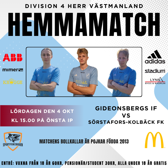 Fyll i din e-postadress för gratis uppdateringar om Gideonsbergs IF A-lag Herr