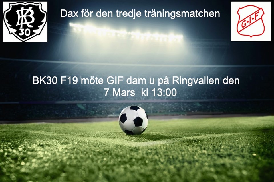 Truppen till matchen mot våra vänner och systrar i BK30 Detta blir en stentuff match för våra tjejer då vi har nästan et helt nytt lag på plan imorgon. Bk30 som driver elitfotboll på dam och tjejsidan är stora favoriter i denna match. Vi ska göra allt för att ge dom en rejäl match. Ni som inte spelar är välkomna att stöta laget matchen börjar kl 12:30 på ringvallen IP. Samling för spelarna är kl 11:15 Julia Sedell Julia C Emrica Randberg Hanna Themnér Elsa Junzell Elsa Harrström Amanda Strömstedt Alicia Stenvall Agnes Forsén Julia Pettersson Emelie Dayan Dilan Mehdizad Jazmine Liebl Lova lindberg Emilia Engström Linnea P