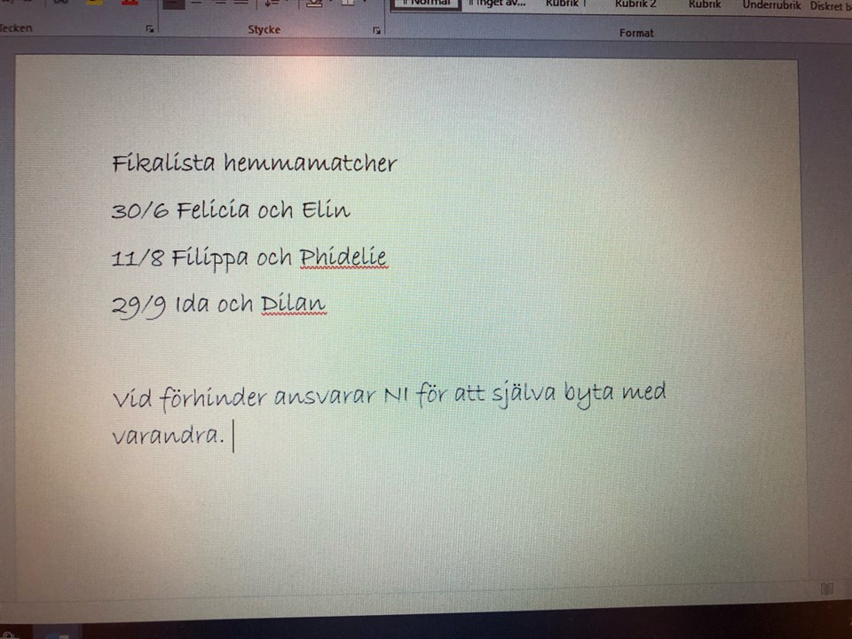 Se bifogat foto. Trevlig midsommar! Division 3 Dam 20 jun 2019 2kommentarer