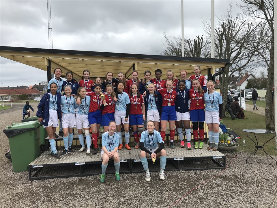 I helgen spelade vi Giffcupen nere i Tidaholm. En bra arrangerad cup som vi får ta och besöka igen. Vi går igenom gruppspelet utan att skönspela men vi visar att vi fungerar som ett lag och tar oss vidare som gruppetta. Där möter vi Norrstrands IF och vi dominerar totalt men utan att göra mål innan paus. Frustrationen kryper på då matchen är en kopia av sista gruppspelsmatchen. Till slut får vi hål på dom och vinner matchen klart. Där möter vi våra vänner från Västerås, Barkarö SK, som gick genom hela turneringen utan att släppa in ett enda mål. Starkt! Så även mot oss. Finalen blev dock en jämn historia och vi förlorar med flaggan i topp. Grattis Barkarö!!! Så kul att se tjejer från båda lagen skratta och ha roligt minutrarna efter man krigat mot varandra:) Vill tacka alla spelare och ledare som varit med under cupen och alla inhoppande målvakter under helgen då vi inte hade någon ordinarie målvakt med oss. Framförallt till Ilona som trots ryggsmärtor ändå kunde stå i mål 8 av 10 halvlekar och gjorde det med bravur. Gruppspel GIF - Tallboda IF 2-1 Vilma, Hanna GIF - Forsheda IF 2-1 Elin, Tina GIF - Lekeryd SSK 0-0 Semi GIF - Norrstrands IF 3-0 Tindra, Elin, Hanna Final GIF - Barakarö SK 0-1 Bilder här