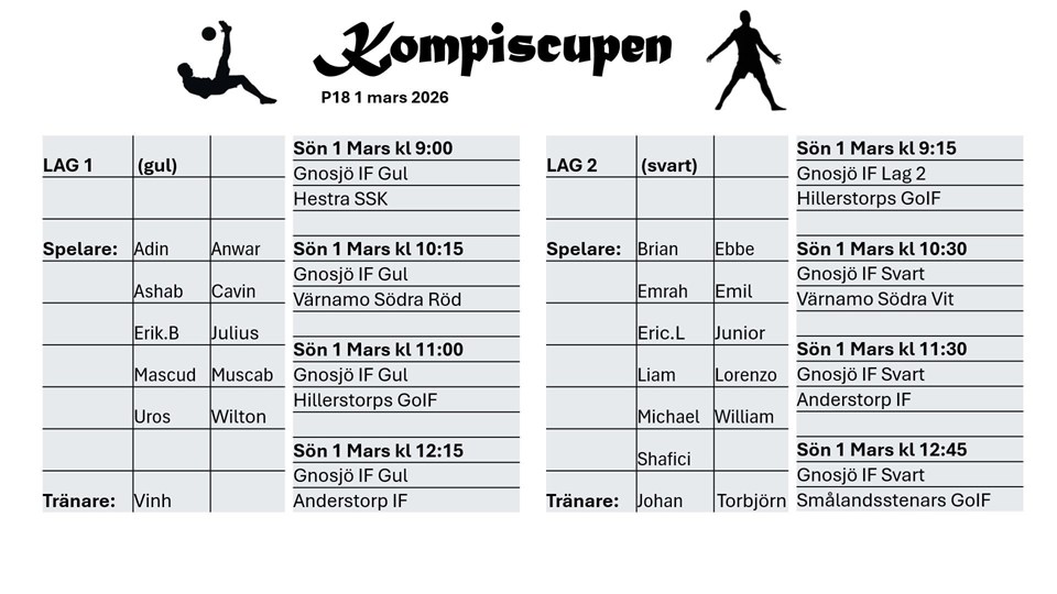 Klicka på bekräftelselänken i det mejl vi skickat dig för att börja ta emot uppdateringar från Gnosjö IF P2018.
