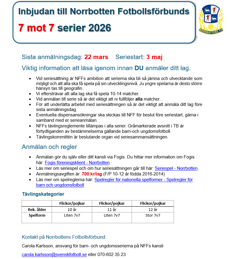 | 7. | (7) | Luleå FC LFC P-2012 |