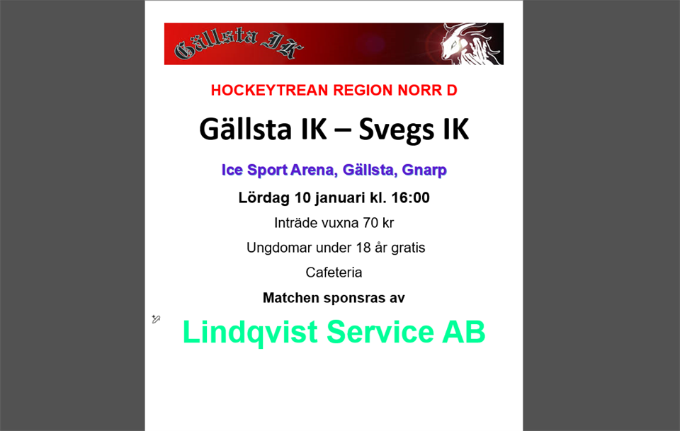 | Järpens IF (hemma) | 24 jan, 16:00 |